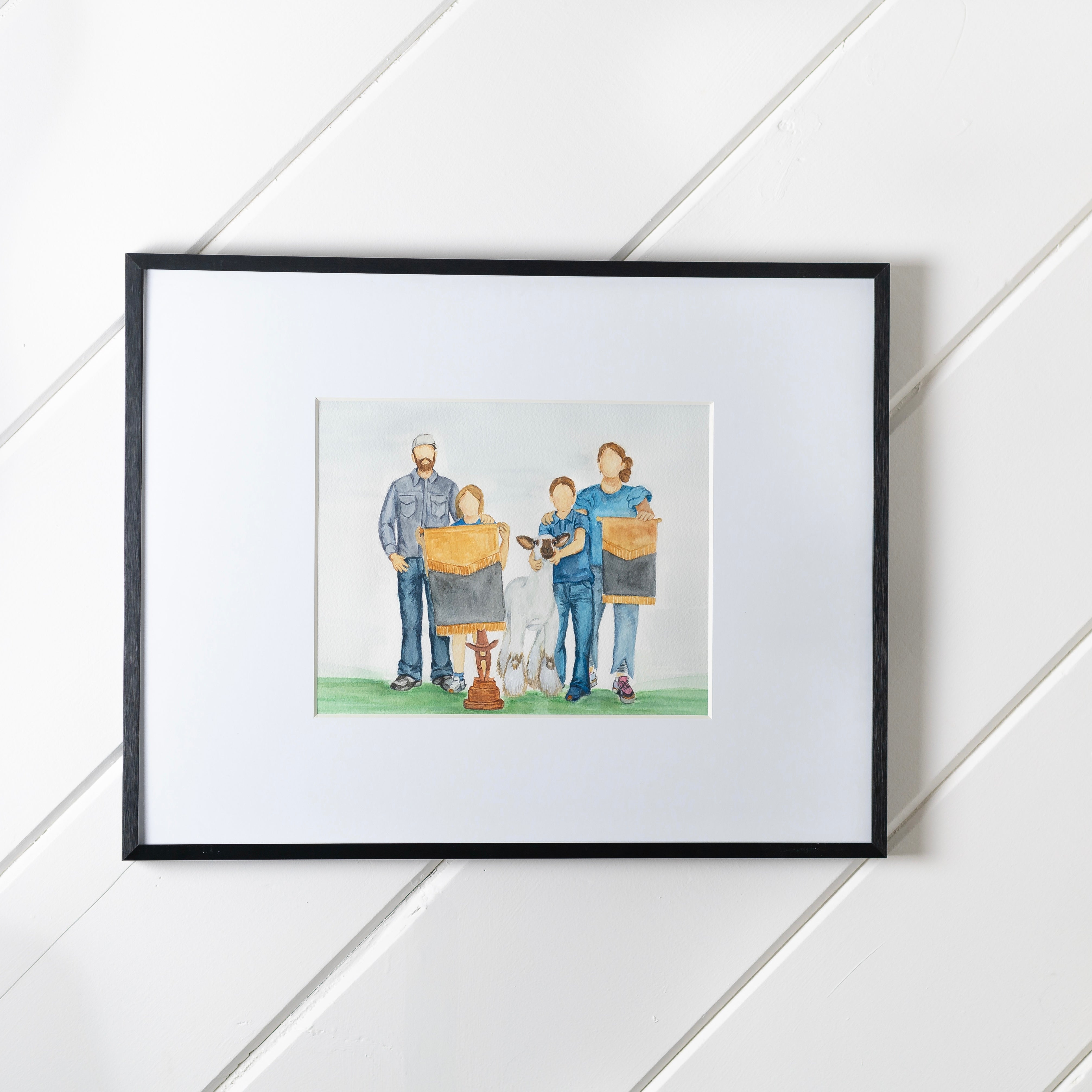 Your show animal is more than just a project—it’s the heart of your hard work, your early mornings, and your family’s proudest memories. Whether it’s your first buckle or a bittersweet goodbye, this custom watercolor portrait turns those moments into a timeless piece of art.
