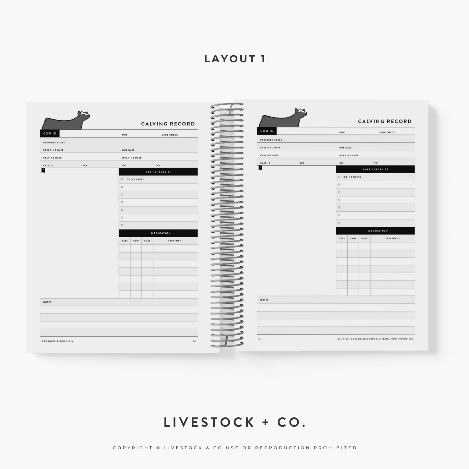 - Cow checklist + medication log