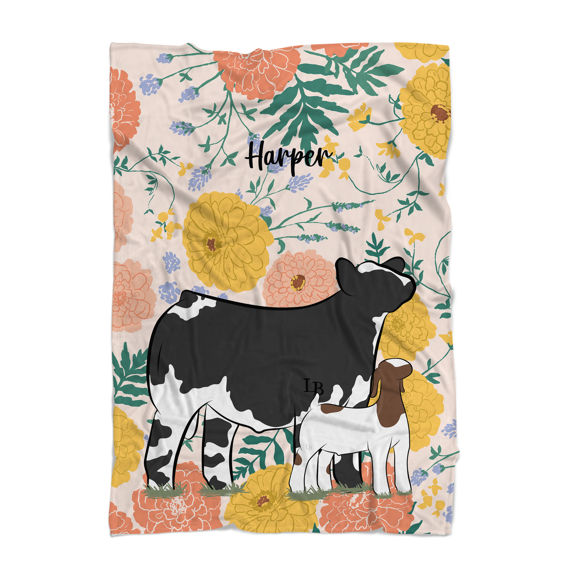 Made with ultra-soft minky fleece and printed with vibrant, personalized livestock artwork, it brings warmth, heart, and heritage to every barn morning, show weekend, or quiet evening at home.