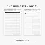 Built for judgers at every level, this notebook features structured layouts that help you capture class details, sort through decisions, and deliver solid reasons—all in one tidy, durable place. With a portable design and tough, wipe-clean cover, it’s made to keep up with the intensity of contest days and the wear and tear of the barn.